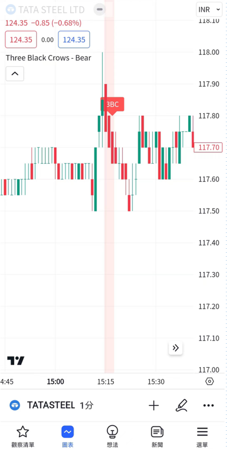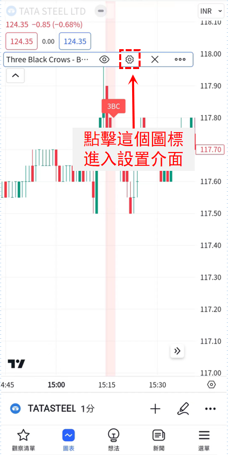 本篇文章將介紹在Android版TradingView應用程式中設置K線形態「三烏鴉-看跌」指標的方法。