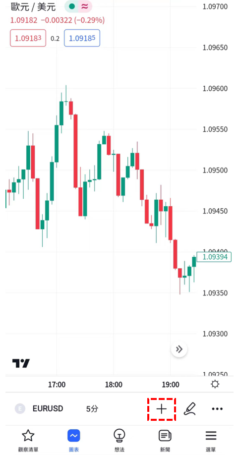 轉移到「圖表」介面後,點擊位於介面下方的「+」圖標。