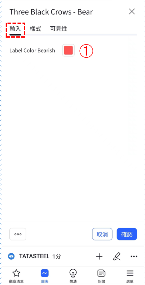 在「輸入」中可以設置「三烏鴉-看跌」的標籖顔色。