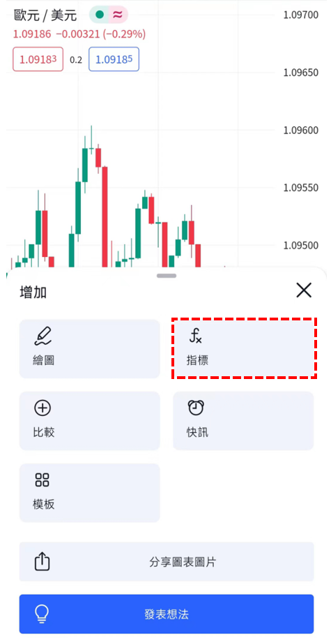 轉移到「圖表」介面後,點擊位於介面下方的「+」圖標。