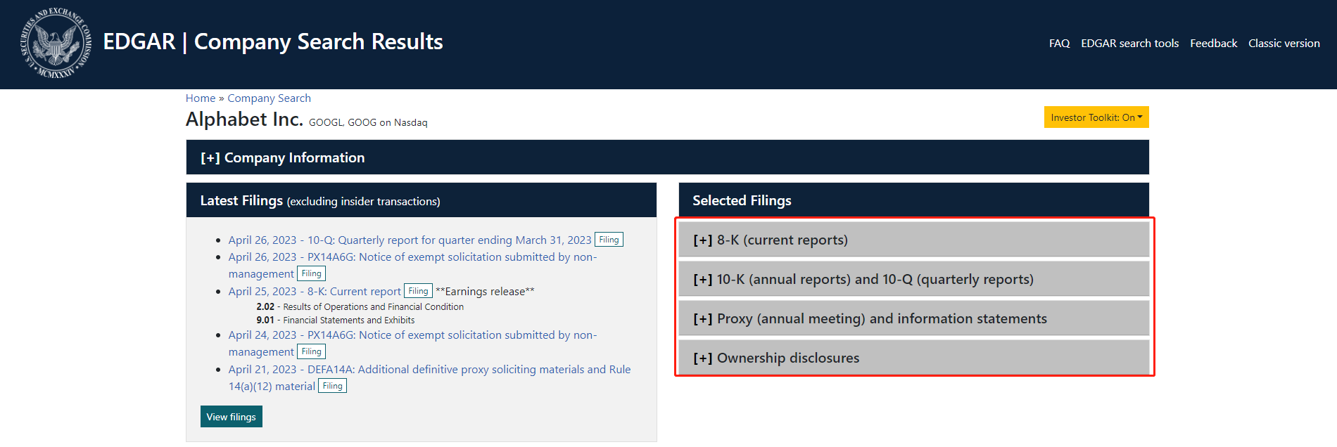 通常在美國證券交易委員會(SEC)的官網就可以查看完整的美股財報。
